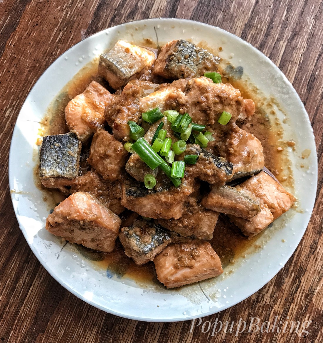 3/ Đổ phần sốt ướp vào chảo và nhẹ nhàng đảo đều cá, tránh làm nát cá. Đun ở lửa vừa cho sốt sệt lại là được, nêm lại và cho dầu mè vào. Cho ra đĩa và ăn thôi!🍽