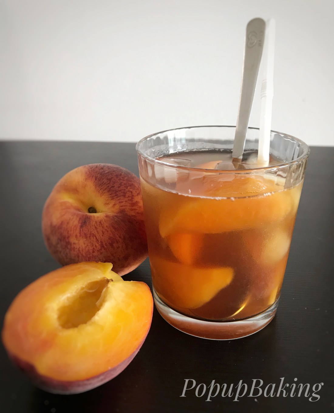 Mình cũng nghiện trà đào ở PL nữa, sang đây uống thử nhiều nơi nhưng vẫn chưa ưng ý. Dạo này rộ lên phong trào làm nước đào ngâm, phần vì mùa đào cũng đến nên mình làm uống cho đỡ thèm. Vị cho ra khá giống, tuỳ thuộc khá nhiều vào loại trà mà bạn chọn. Nếu không thích uống trà thì bạn hoàn toàn có thể pha cùng nước loãng, vẫn ra ly nước đào ngon như thường. Công thức này mình dựa vào chia sẻ của một số chị em trên mạng và chỉnh sửa lại theo ý thích cá nhân, theo mình thì giống đến 80% vị trà đào ở PL nên mình quyết định đặt tên cho nó là Trà Đào PL – PopupBaking Version. 😂