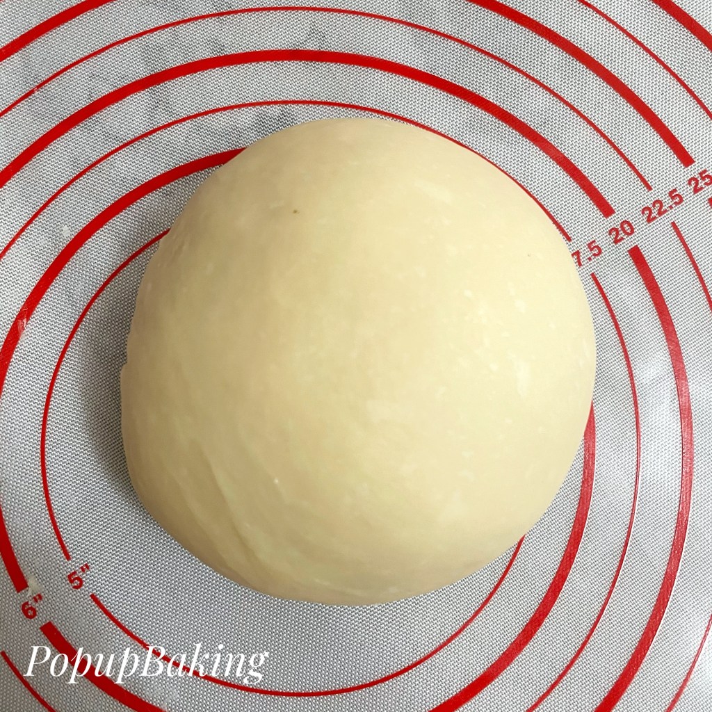2/ Để hỗn hợp nghỉ tầm 10 phút (đậy kín bằng khăn ẩm), sau đó cho lên bàn và nhồi. Cách nhồi bột chi tiết có tại đây. Nhồi và đập đến khi mặt bột mịn, không dính tay là được, thao tác bằng tay tầm 10-15 phút.