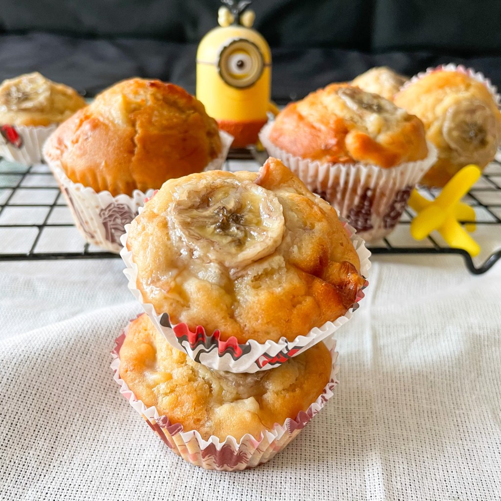 Muffin, muffin, muffin, mỗi lần nghe tên loại bánh này sao mình cứ thấy cute kiểu gì thế nhỉ, như tên mèo con í.😆 Tuần trước mình có giới thiệu đến bạn công thức muffin việt quất và cream cheese, đi kèm là một kỉ niệm be bé về chiếc muffin đầu tiên khi mình đặt chân đến Mỹ du học, tính ra cũng tầm 6 năm rồi. Muffin kiểu đấy sử dụng khá nhiều bơ, đúng kiểu truyền thống, nếu ăn không quen sẽ cảm thấy hơi ngấy. Thế nên là hôm nay mình lại chia sẻ một công thức muffin khác phù hợp với khẩu vị của người châu Á hơn. Sẵn nhà còn vài trái chuối chín nên mình quyết định làm muffin chuối, cho thêm một ít táo vào để bánh có thêm vị chua chua, ăn cũng vui miệng hơn nữa. Nhân dịp ngày Quốc tế Thiếu nhi 1/6, mình mong là những chiếc bánh bé xinh này (cùng minion trong hình) có thể mang đến một nguồn năng lượng tích cực cho bạn trong ngày nhé. 😊